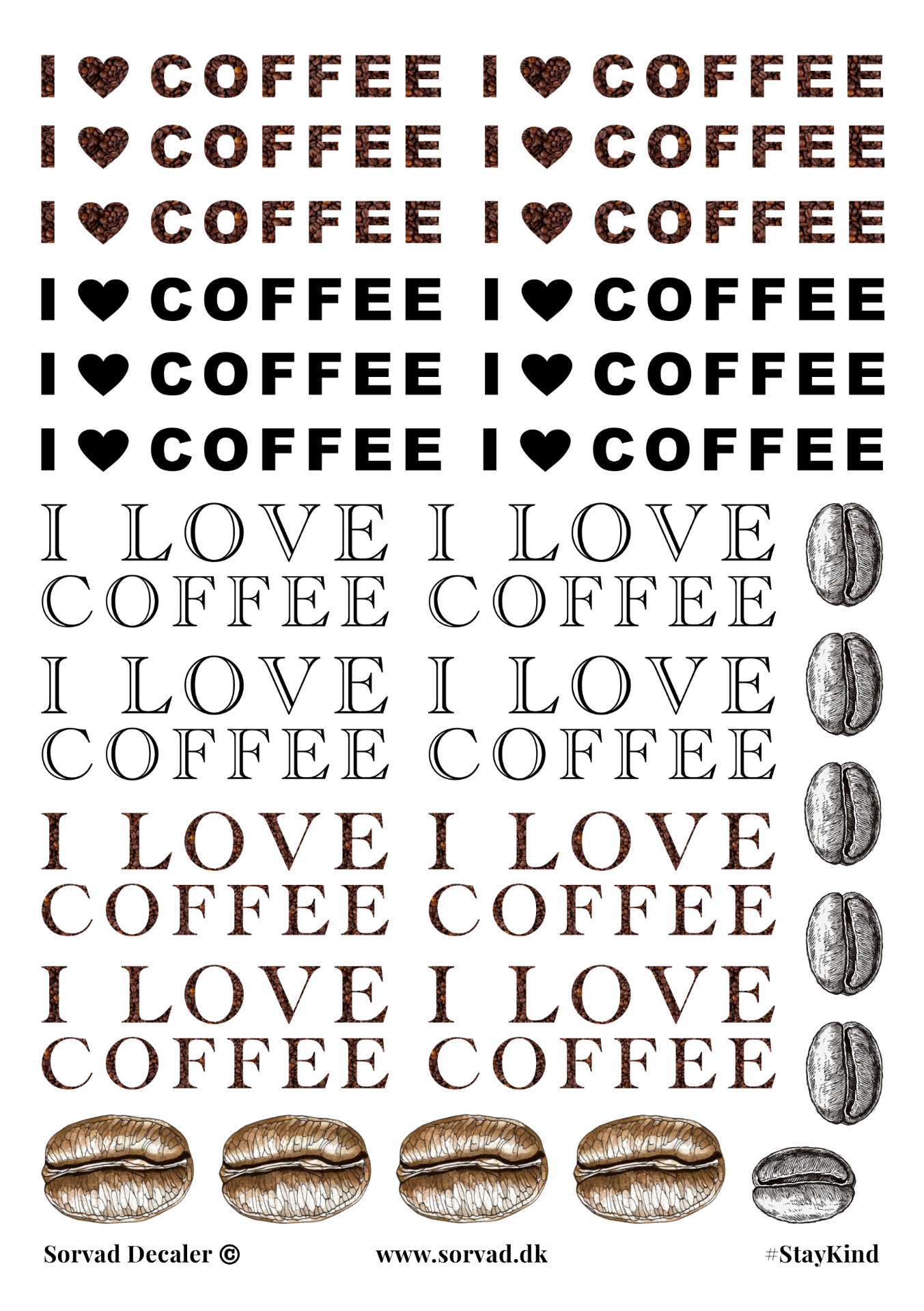 Teksterne er 5,5 og 6,4 brede – kaffebønnerne er 1,7 og 2,5 cm på den lange led
